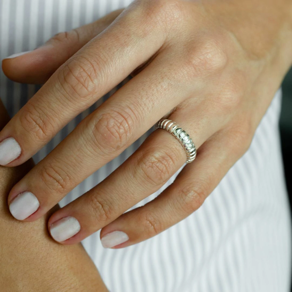 O Anel Regulável Riscos no Banho de Prata é uma joia que combina modernidade e sofisticação em uma peça única. Com um design texturizado, seus riscos finos criam uma aparência marcante e contemporânea, refletindo luz de forma sutil e trazendo um toque de originalidade ao visual. O banho de prata de alta qualidade garante brilho duradouro e resistência, destacando o acabamento polido e realçando a textura do anel.