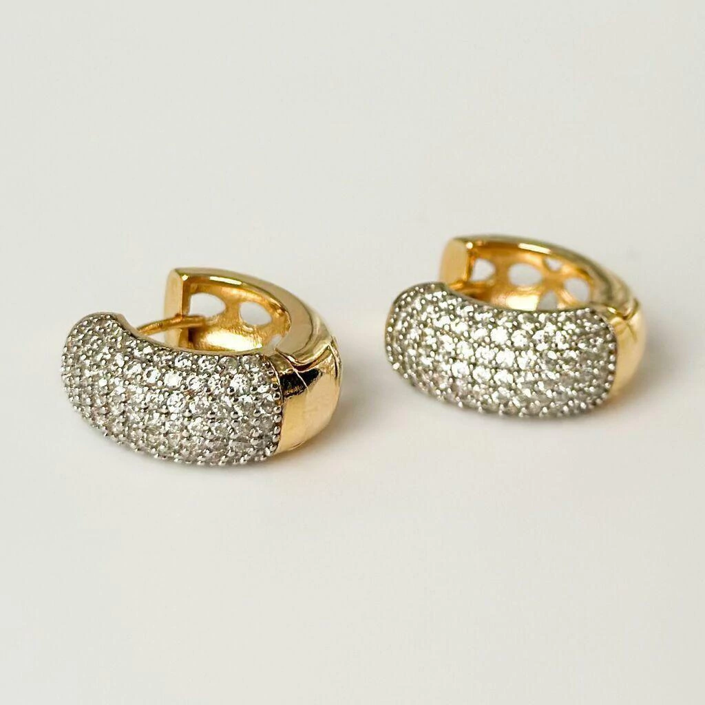 Brinco Argola Cravejada Luxo Media Aplique no Banho Ouro 18K