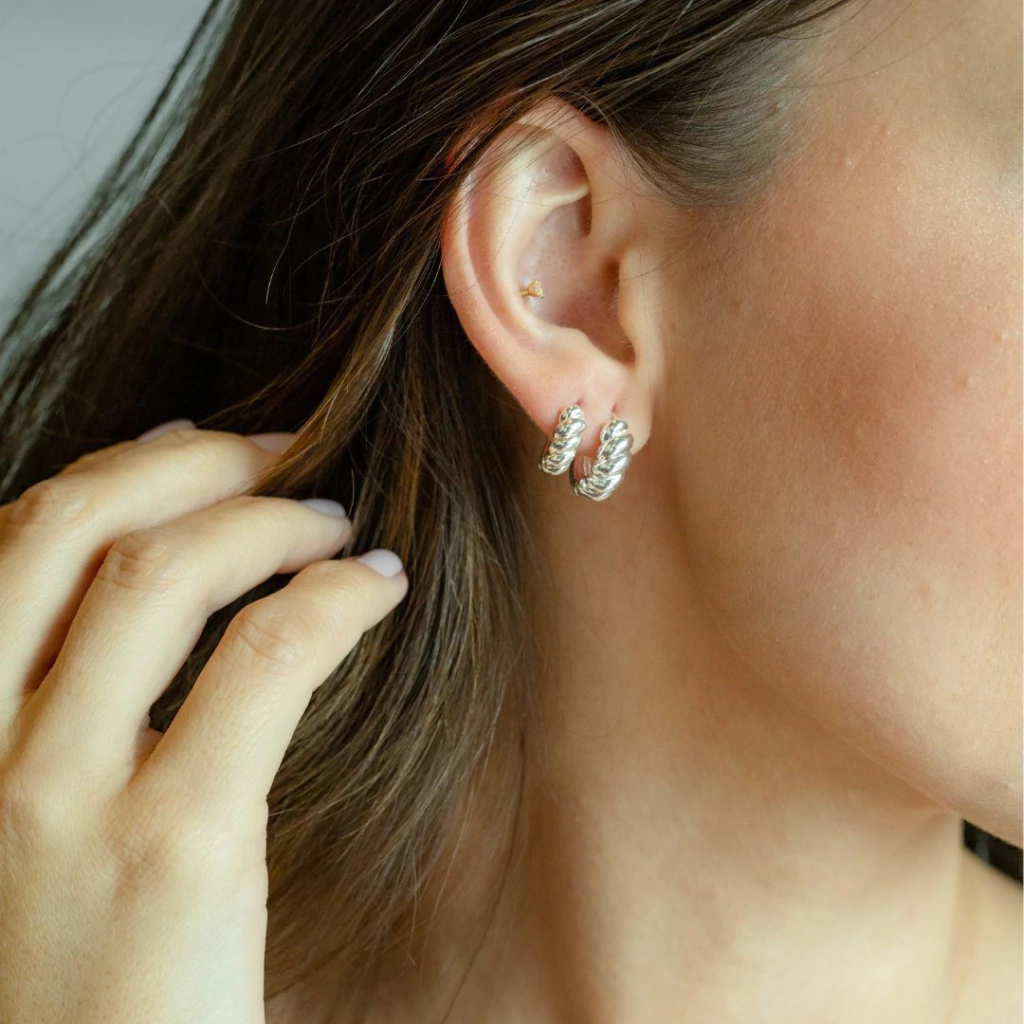 Brinco Argola Croissant Frente P no Banho de Prata