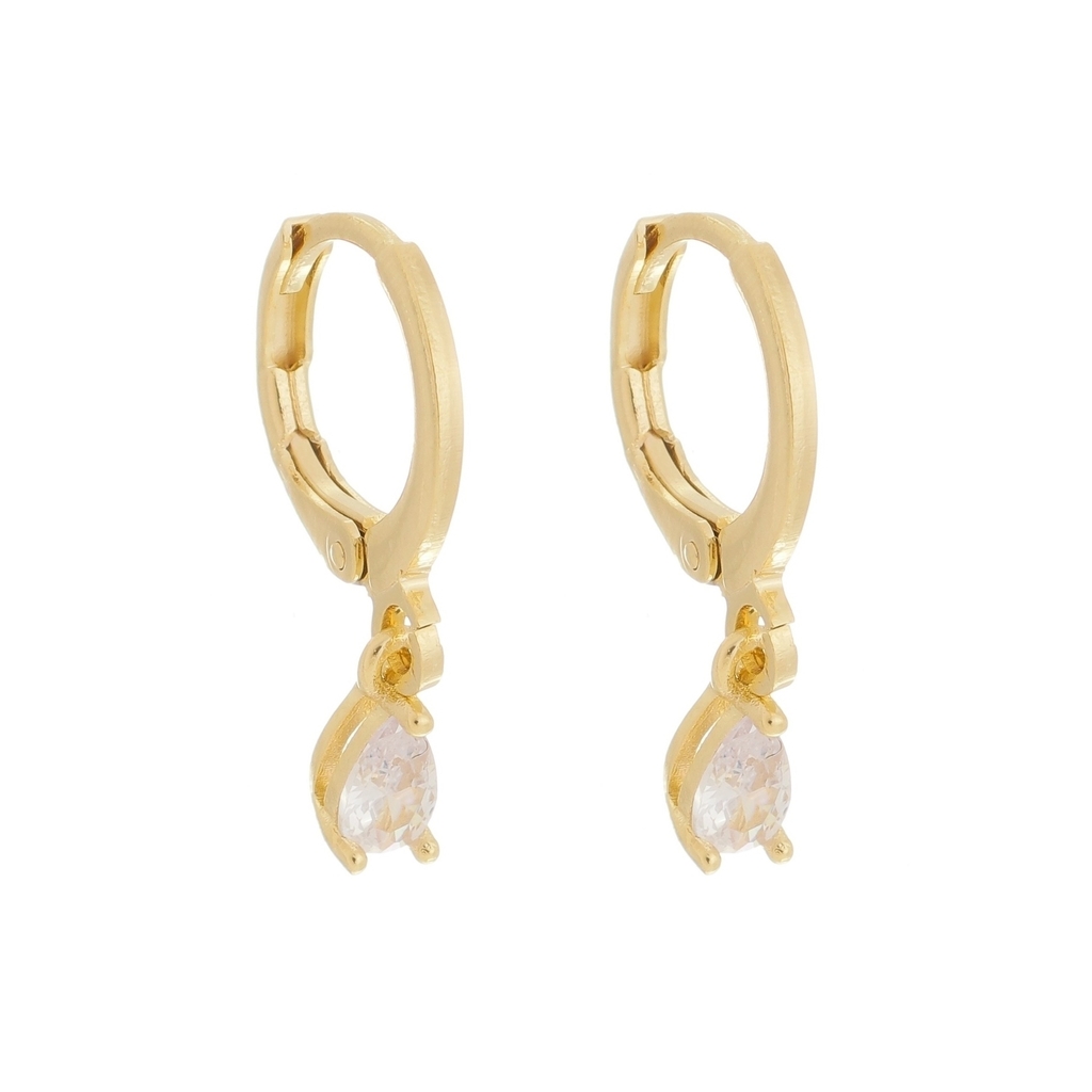 Brinco Argolinha com Gota de Zircônia Cristal Pequena no Banho Ouro 18K