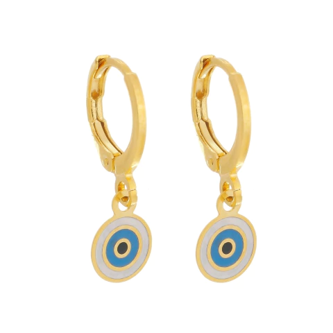 Brinco Argolinha com Pingente de Olho Grego no Banho Ouro 18K