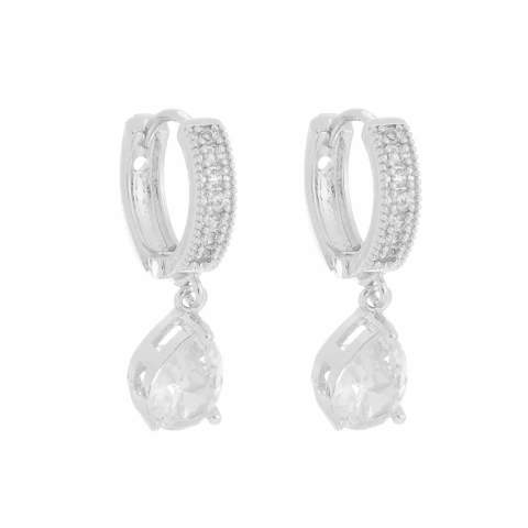 Brinco Argolinha Cravejada com Pingente de Gota Zircônia no Banho de Ródio Branco