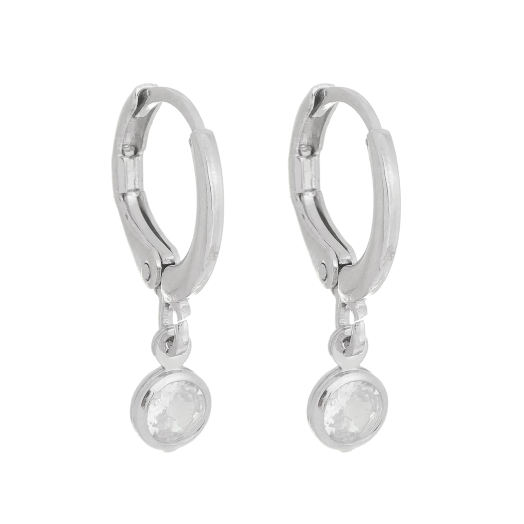 Brinco Argolinha Cravejada com Pingente de Gota Zircônia no Banho de Ródio Branco