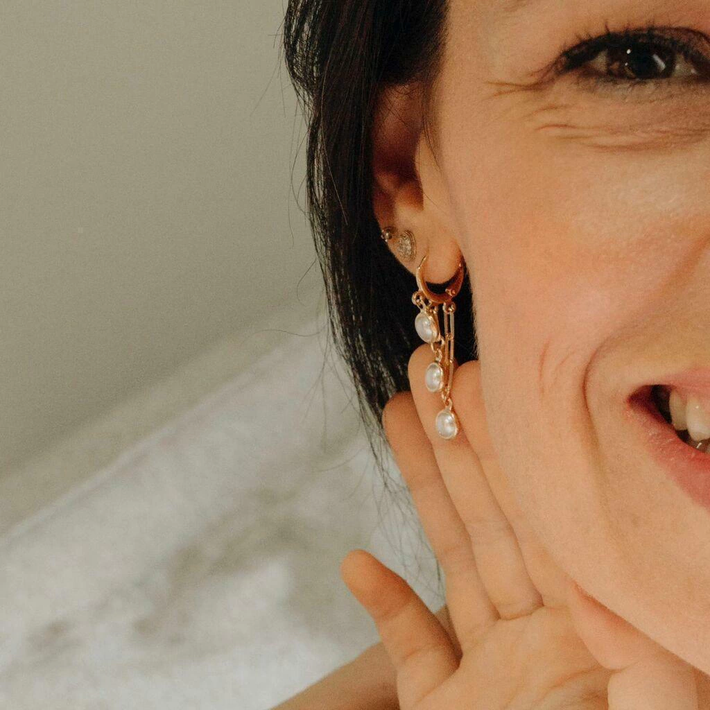 Brinco Argolinhas Pingentes de Perolas elos Cart no Banho Ouro 18K