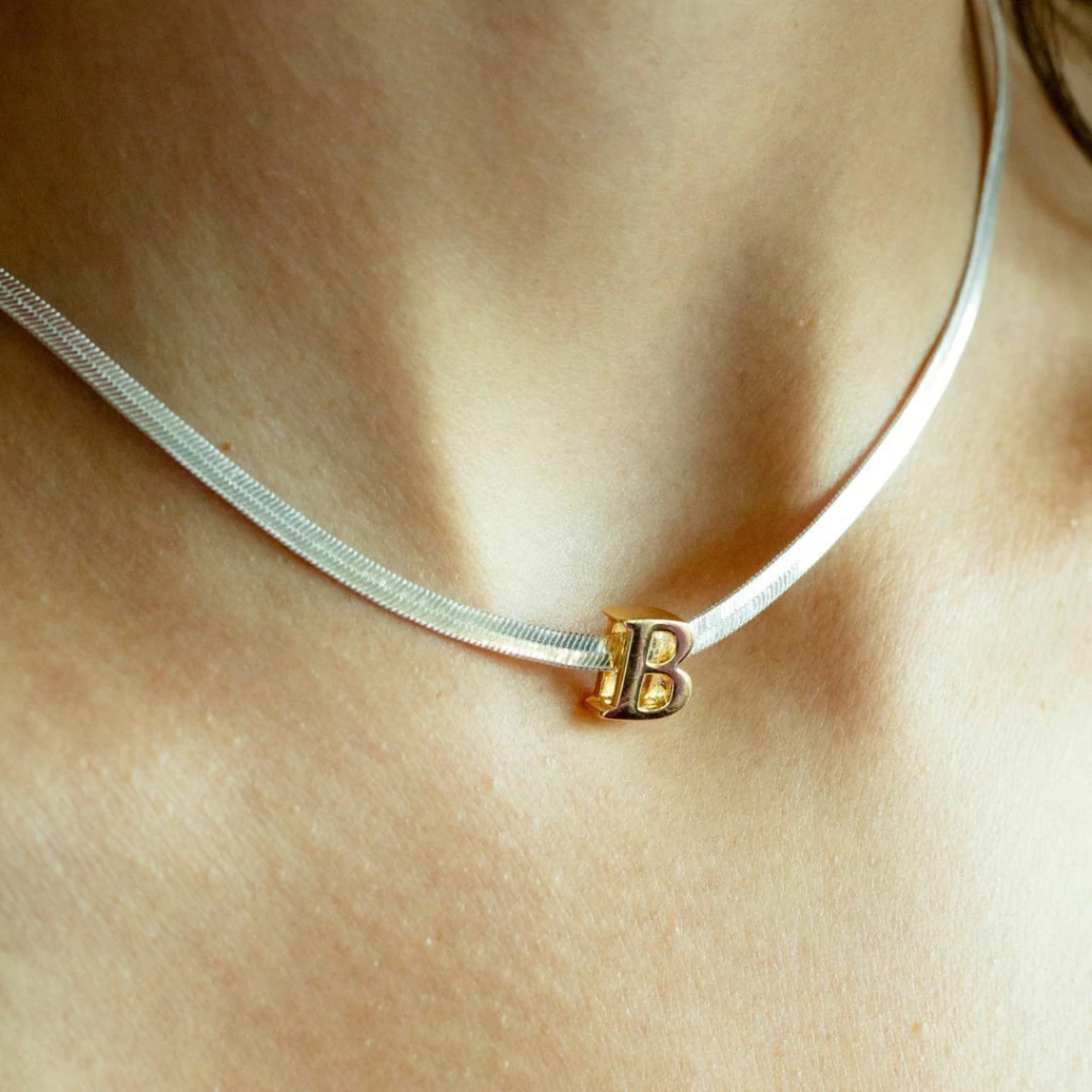 Choker Banho de Prata com Pingente Letras em Banho de Ouro 18K