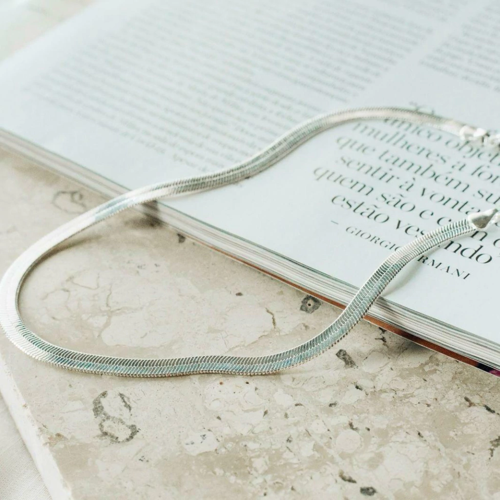 Choker de Fita 5 mm de 45 cm em Banho de Prata 925