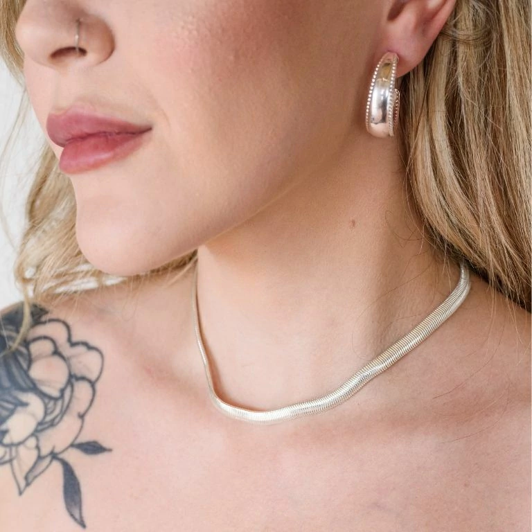 Colar Elos Longos em Banho Prata