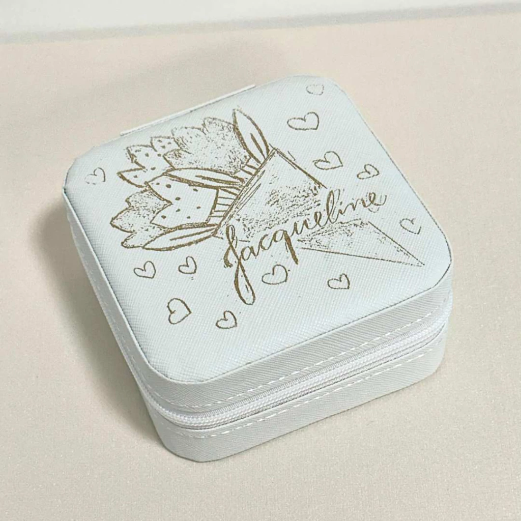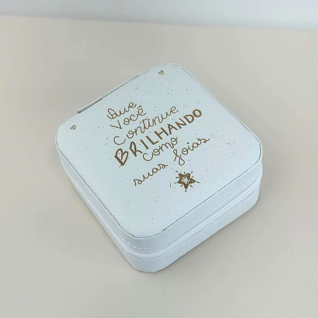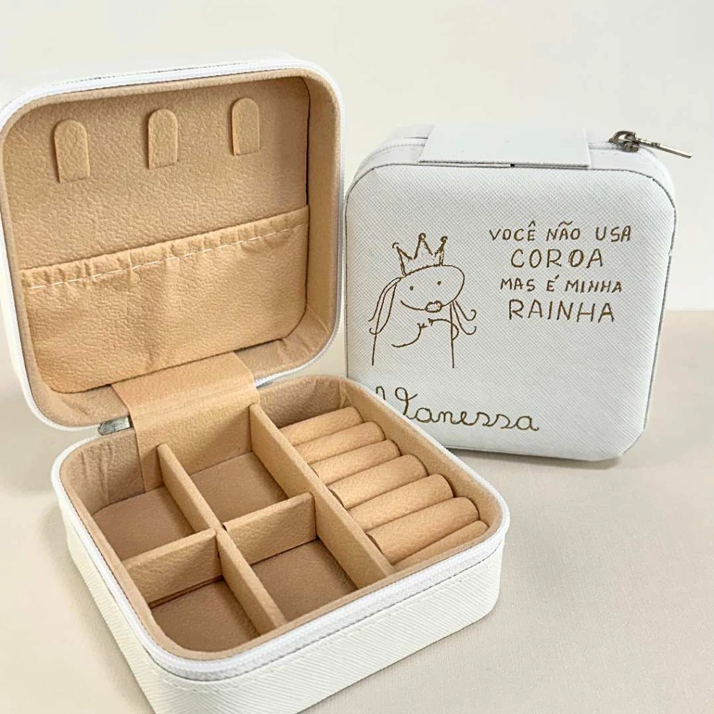 Este encantador porta-joias é perfeito para armazenar seus acessórios favoritos de forma organizada e segura. Com compartimentos internos versáteis e um design compacto, é ideal para uso em casa ou em viagens.