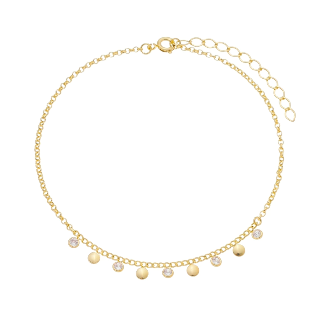 Tornozeleira com Medalhinhas de Zircônia 20 cm + Extensor no Banho de Ouro 18K