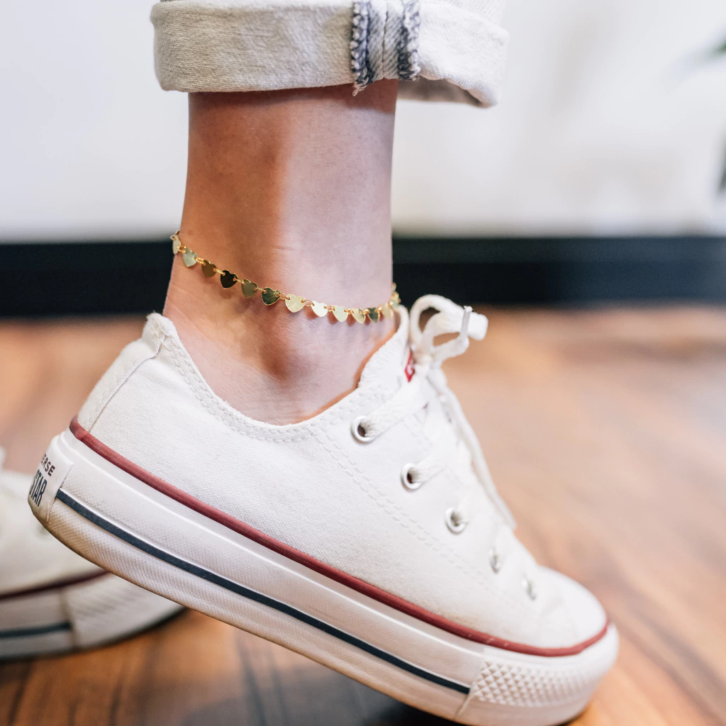 Tornozeleira Corrente de Corações de 21 cm + Extensor Do Banho de Ouro 18K