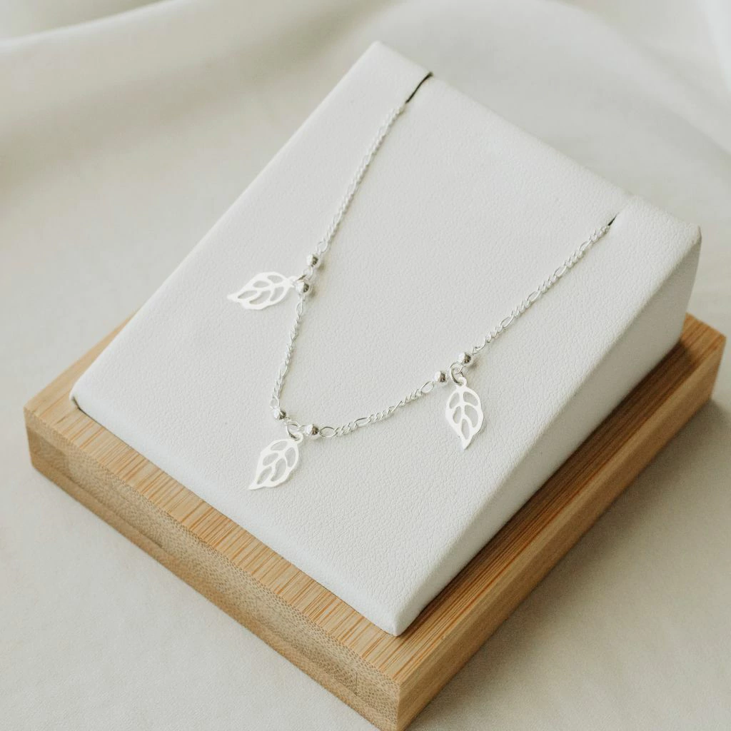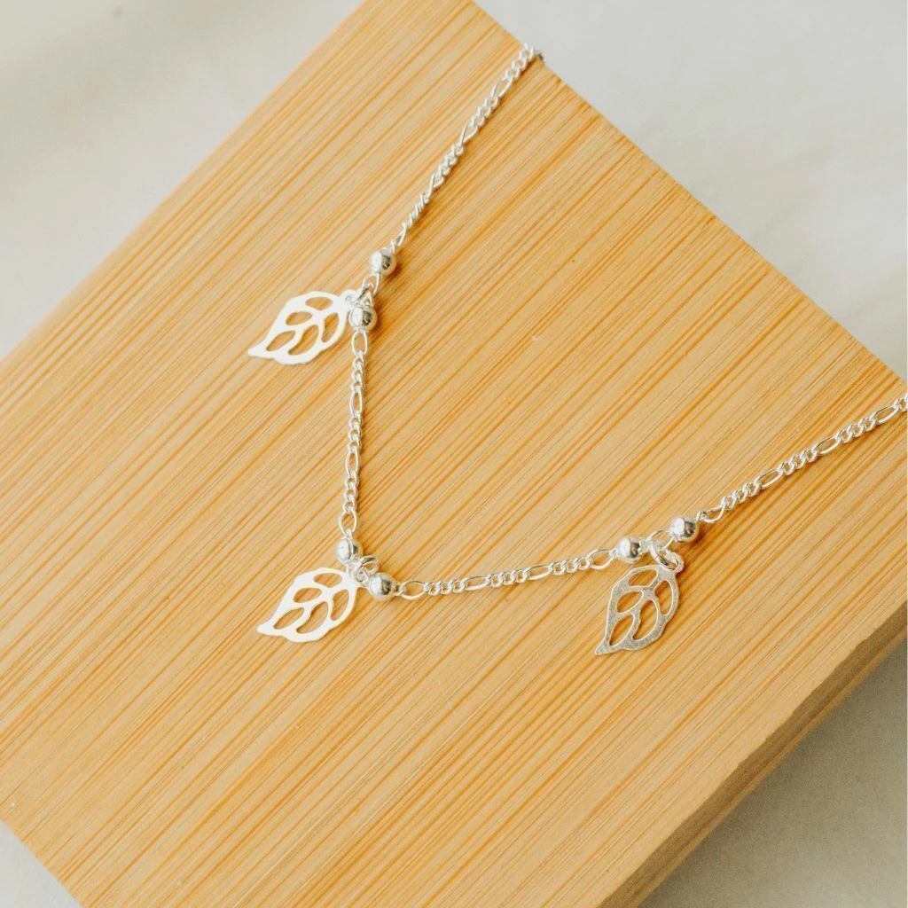 Tornozeleira Folhas no Banho de Prata